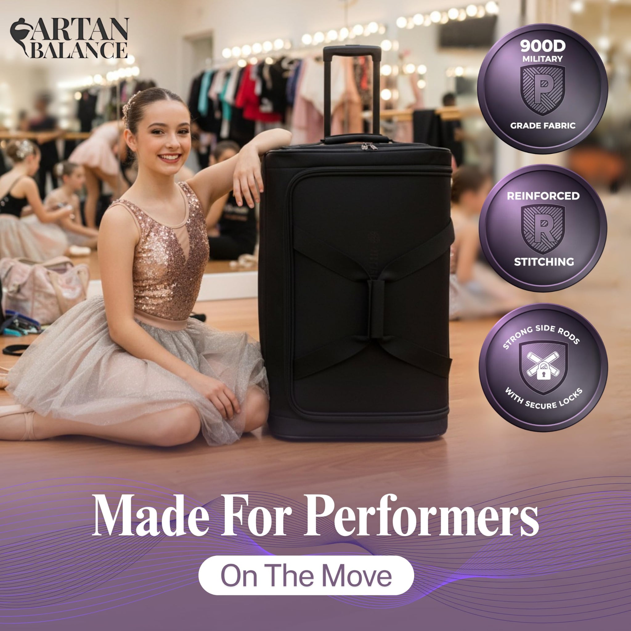 VERSATILE FOR ALL PERFORMERS: More than just a dance bag with wheels, this rolling bag is ideal for competitive dancers, cheerleaders, figure skaters, theater performers, athletes, models, and livestreamers who need a portable wardrobe on wheels.