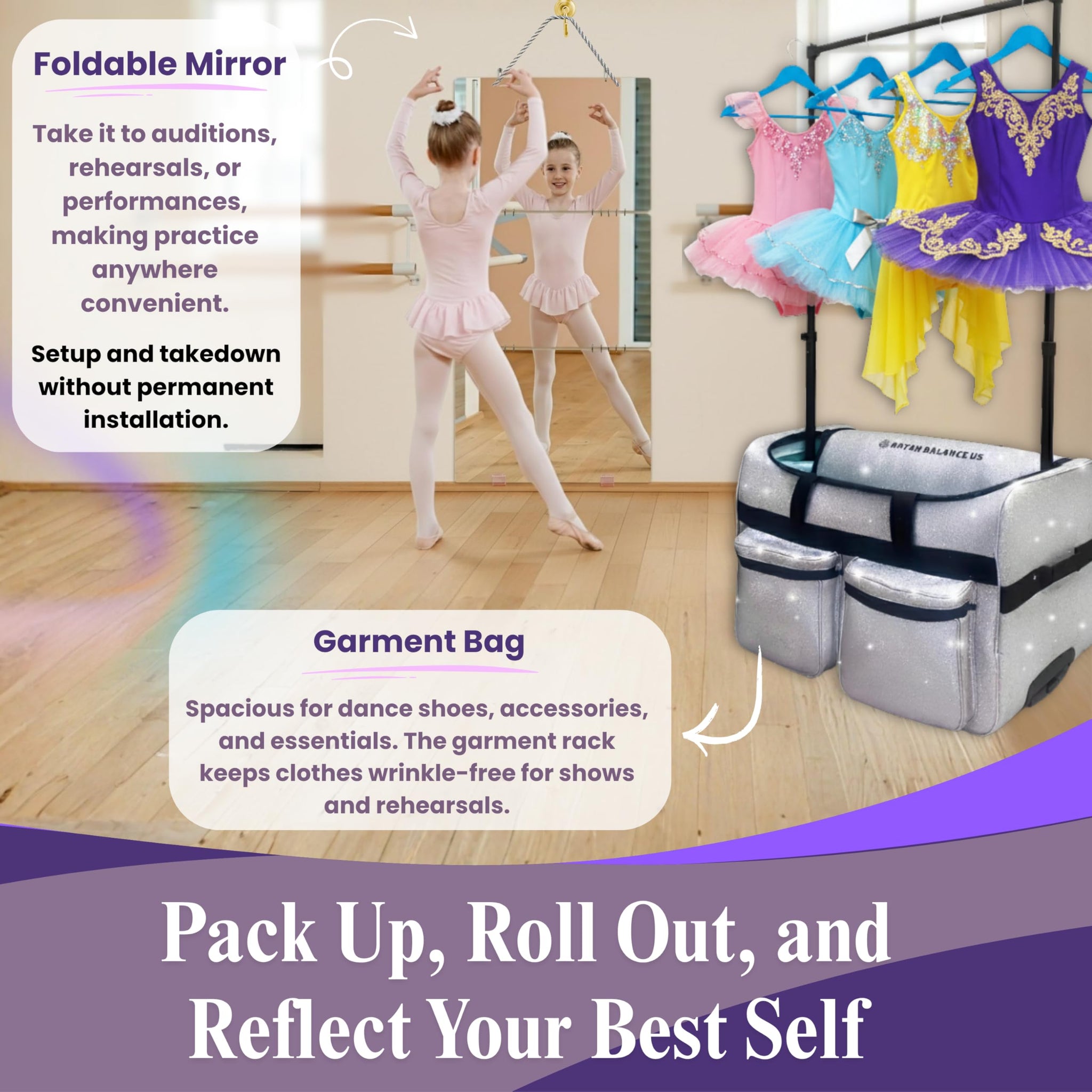Professional Dance Competition Bag with Built-In Garment Rack & Foldable Mirror – , 28″ Size — Ideal for Kids, Teens and Performers